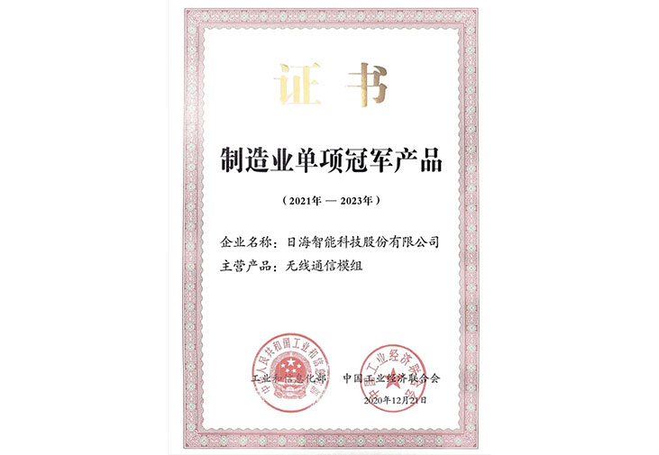 近期,今年会公司智能无线通讯模组产品荣获国家级制造业单项冠军!这项殊荣凝结着今年会集团通信模组板块全体成员的智慧和努力,将无线通讯模组技术创新转化成为推动公司、社会高质量发展新动能。